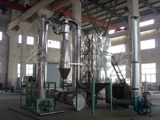 ★干燥氣體進入干燥機底部,產(chǎn)生強烈的旋轉(zhuǎn)氣流,對器壁上物料產(chǎn)生強烈的沖刷帶出作用,消除粘壁現(xiàn)象。