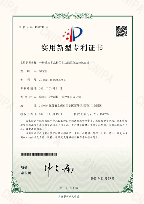 CHANGZHOU JIAFA GRANULATION AND DRYING EQUIPMENT CO., LTD